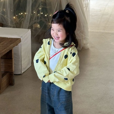 비다이어리.레몬빅도트후드자켓