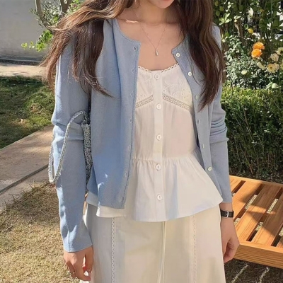 on.[CD617]라운드넥크롭가디건